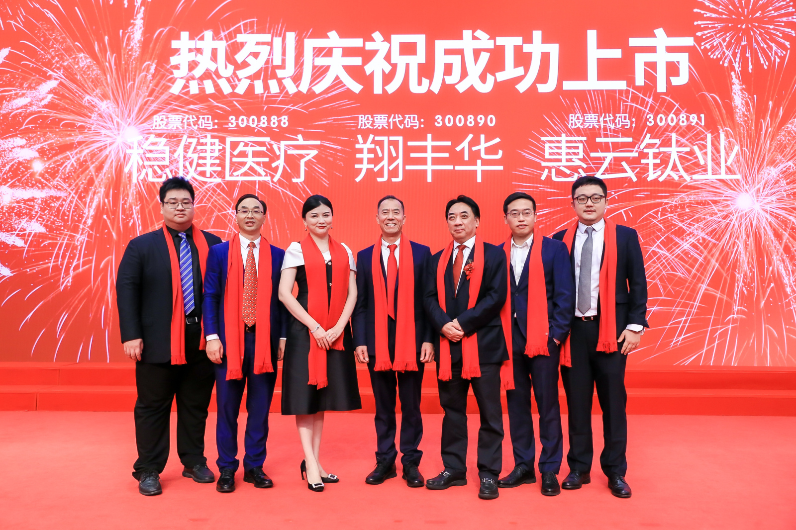 与稳健医疗董事长李建全(正中)在上市仪式现场合影