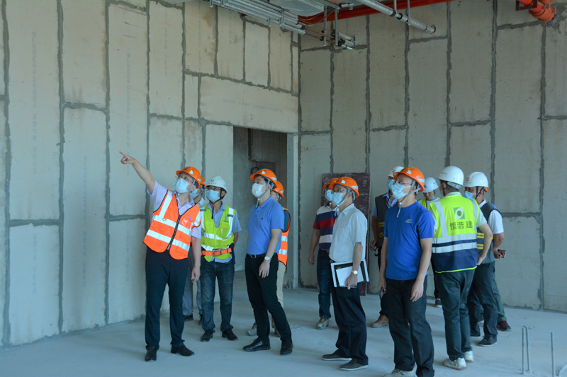 检查过程中,张键副总裁强调,目前正处华南区龙舟雨季节,又叠加新冠肺炎疫情防控影响,施工任务重,现场人员流动多,施工机具使用频繁,不少施工工序涉及危险作业,在保证工程进度、质量和控制成本的情况下,安全工作绝不能放松,必须严格按照安全生产管理流程,落实安全生产单位主体责任,加强安全巡查,及时发现安全隐患并认真整改,确保总部大厦安全、顺利完成施工。