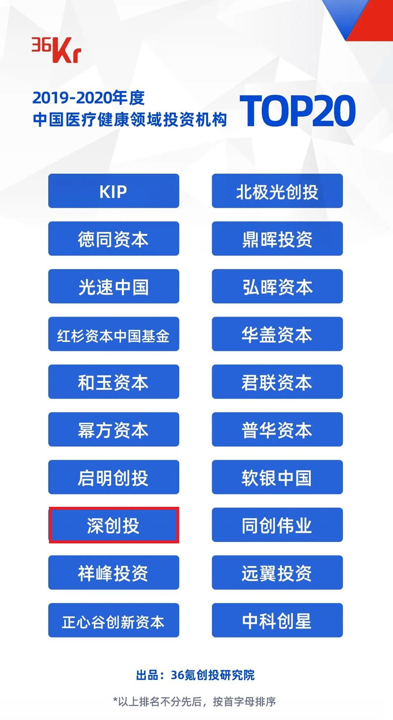 “2019-2020年度中国医疗健康领域投资机构TOP20”