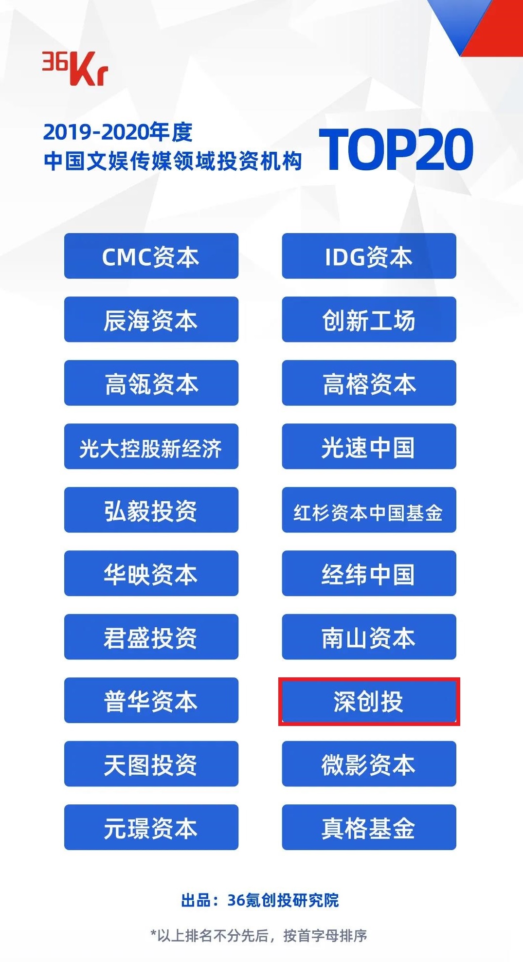 “2019-2020年度中国文娱传媒领域投资机构TOP20”