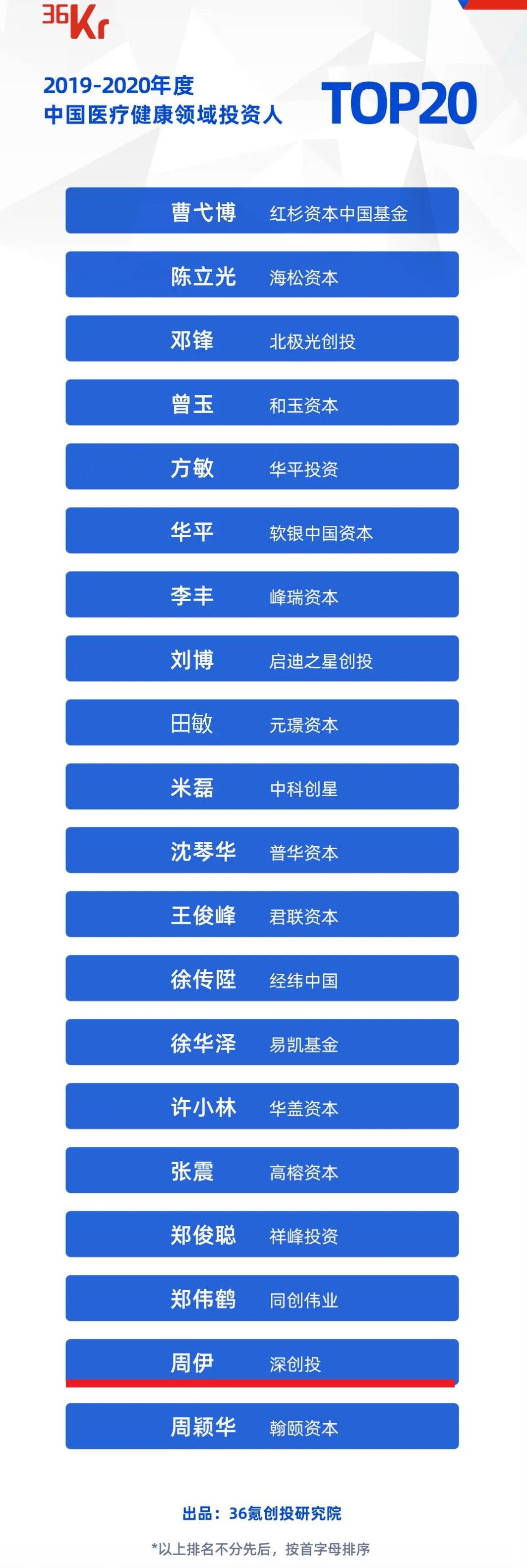 “2019-2020年度中国医疗健康领域投资人TOP20”