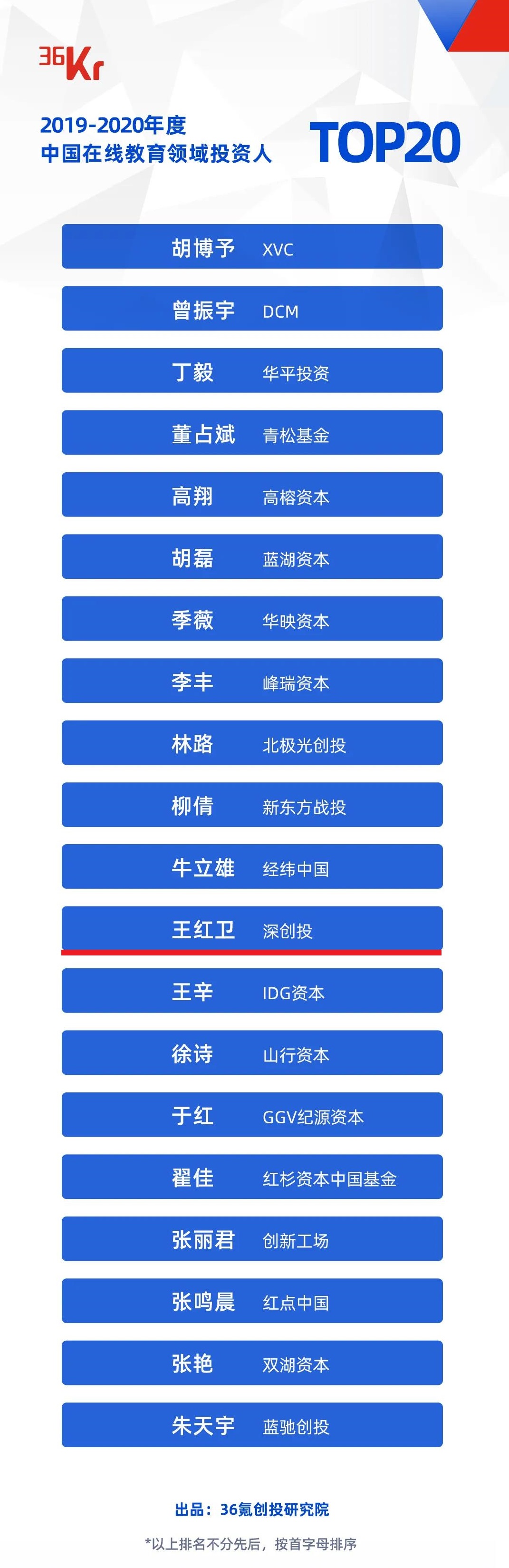 “2019-2020年度中国在线教育领域投资人TOP20”