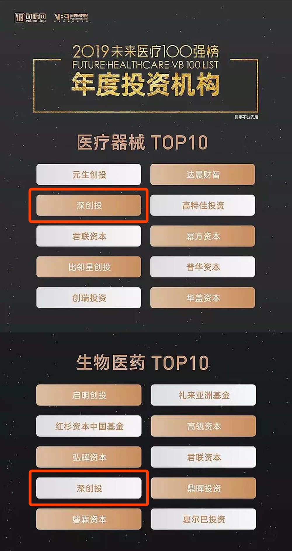 深创投荣获2019未来医疗100强评选“年度投资机构医疗器械TOP10”及“年度投资机构生物医药TOP10”