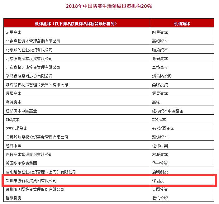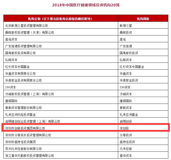 12月5至7日,由清科集团、投资界主办的第十八届中国股权投资年度论坛在北京举行,论坛于7日晚隆重揭晓2018中国股权投资年度排名榜单,深圳市创新投资集团有限公司(简称“深创投”)荣获“2018年中国创业投资机构50强”第四名(本土创投机构第一名),同时获评“2018年中国医疗健康领域投资机构20强”、“2018年中国消费生活领域投资机构20强”、“2018年中国清洁技术领域投资机构10强”、“2018年中国先进制造领域投资机构10强”,总裁孙东升获评“2018年中国创业投资家10强”,健康产业基金投资部总经理周伊在论坛F40-2018中国青年投资人峰会被评为“F40中国青年投资人”。