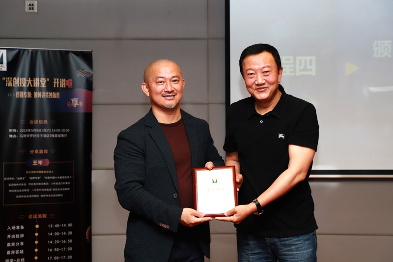5月5日下午,深圳市创新投资集团有限公司(以下简称“深创投”)内部综合培训平台“深创投大讲堂”正式开讲,首期邀请了红杉中国合伙人王岑先生为深创投近400名员工带来主题为“大消费领域如何寻找独角兽”的精彩分享。深创投董事长倪泽望出席培训并发表开班致辞。深创投总裁孙东升为王岑先生颁发了荣誉讲师聘书,并进行课程总结。深创投综合办公室副主任张晏宁主持本次活动,并介绍了深创投培训体系及“深创投大讲堂”的设立背景和使命。