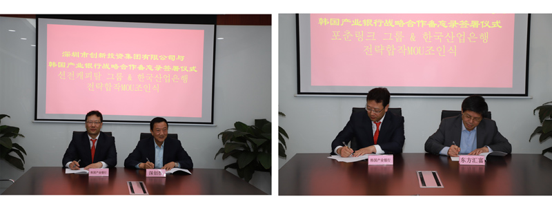 基于中韩两国的战略合作伙伴关系,为培育两国创新企业,支持双方企业进军国际市场,深创投与东方汇富分别与韩国产业银行签署了战略合作备忘录。深创投总裁孙东升表示,希望通过此次战略合作备忘录的签署,与韩方联合发挥各自在投资行业所积累的项目资源和专业优势,共同服务中韩两国优质企业,为企业提供资本支持及市场资源对接。东方汇富董事长阚治东表示,战略合作备忘录的签署是东方汇富与韩国产业银行在投资及高新技术交流方面的良好合作开端。