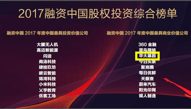 深创投投资企业华大基因获评2017年度“中国最具商业价值公司”。