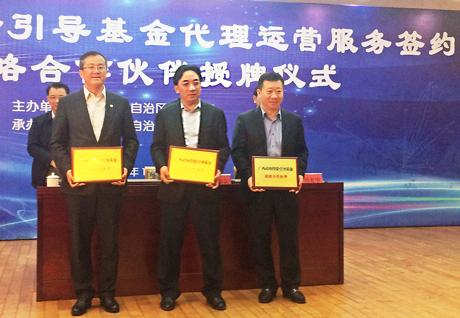 12月13日下午,广西政府投资引导基金代理运营服务机构签约暨战略合作伙伴授牌仪式在广西财政大厦隆重举行。深创投与广西政府代表单位广西投资引导基金有限责任公司(简称“广西政府投资引导基金”)正式签订了代理运营服务委托协议,受托管理广西政府投资引导基金。广西壮族自治区人民政府副主席黄伟京等领导为深创投授牌。