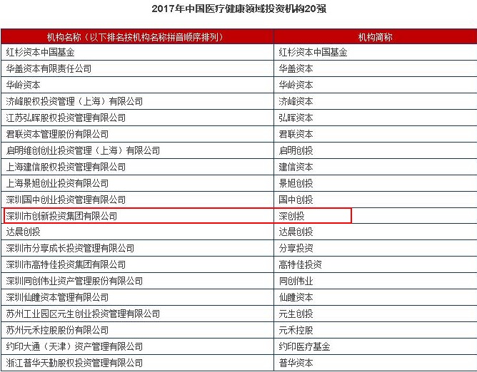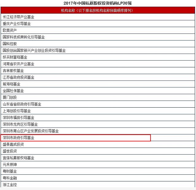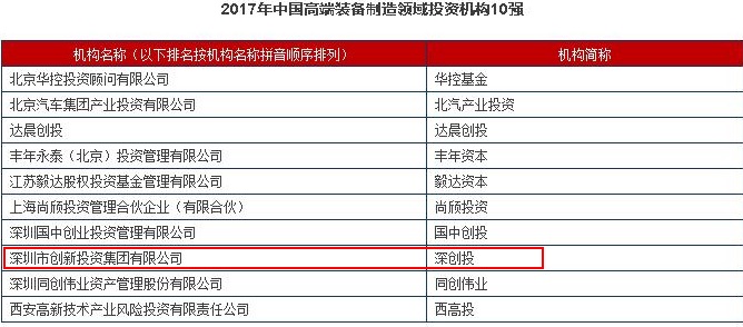 深创投管理的深圳市引导基金荣获“2017年中国私募股权投资机构LP30强”;深创投发起设立的、管理国家中小企业发展基金的国中创投独揽“2017中国股权投资年度最活跃新锐机构”、并荣获“2017中国创业投资机构100强”、“2017中国股权投资机构新锐30强”、“2017年中国医疗健康领域投资机构20强”、“2017年中国高端装备制造领域投资机构10强”等多项荣誉。