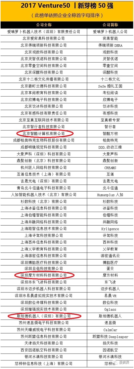 此外,深创投投资企业北京智酷计算机有限公司、深圳摩方材料有限公司以及深创投属下深圳市创赛基金投资管理有限公司投资企业斯坦德机器人(深圳)有限公司3家企业进入新芽榜50强榜单。