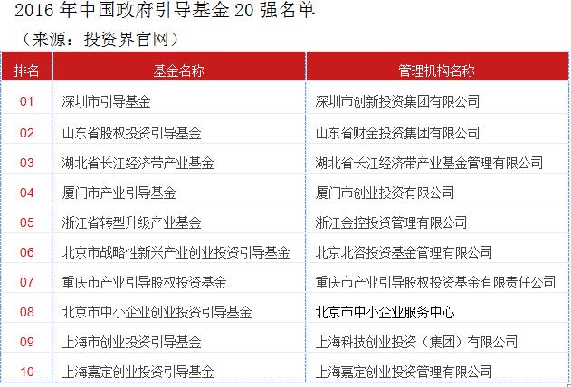 深圳市引导基金获评 “2016年中国政府引导基金20强”第一名