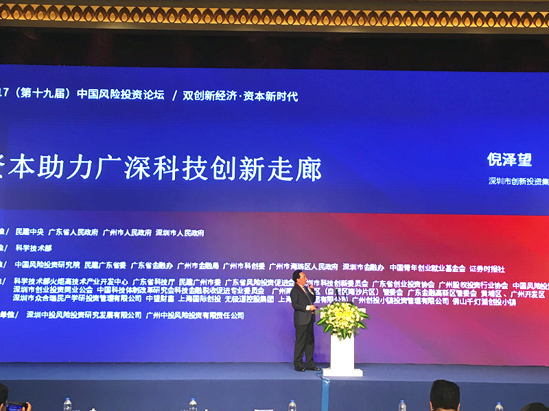在当天下午举行的“双创战略新动能 风险投资新格局”高层论坛上,深创投集团董事长倪泽望发表了题为《资本助力广深科技创新走廊》的演讲。他总结了美国128号公路的成功经验和启示,将美国128号公路和广深科技创新走廊进行对比,提出了合力共建广深科技创新走廊的具体建议。