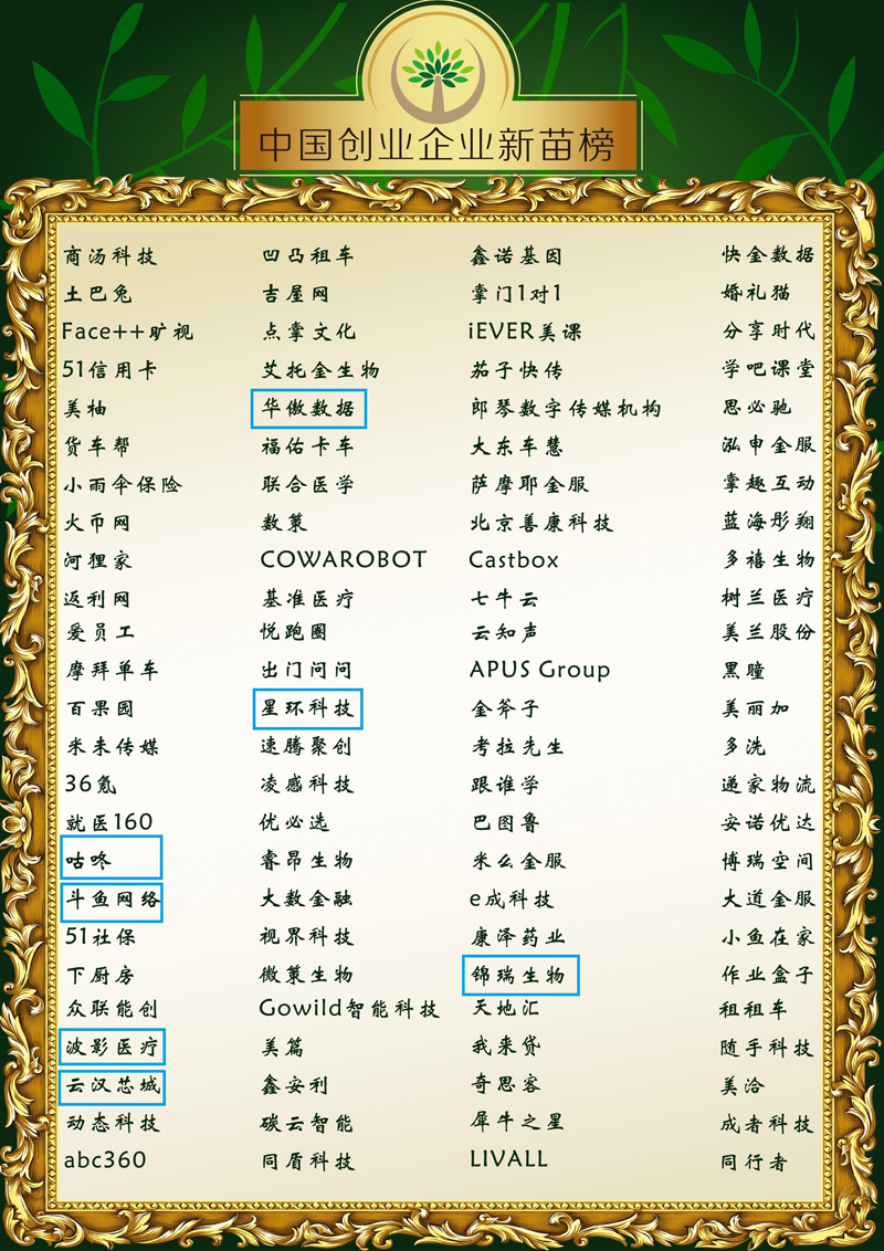 咕咚(成都乐动)、斗鱼网络、波影医疗、云汉芯城、华傲数据、星环科技、锦瑞生物等深创投投资的七家企业荣登“中国创业企业新苗榜”。