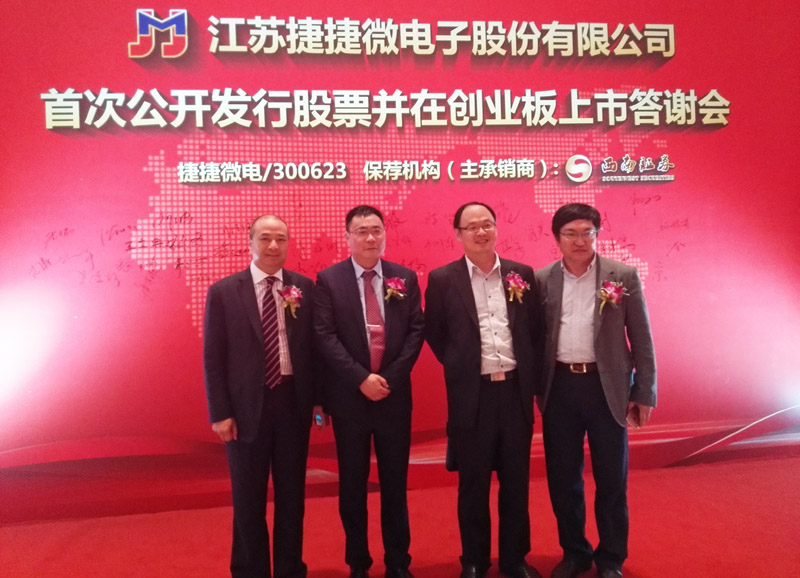 深创投总裁孙东升、捷捷微电项目投资经理盛波受邀出席了上市敲钟仪式。深创投副总裁刘波、项目投资经理盛波受邀出席了上市答谢会。