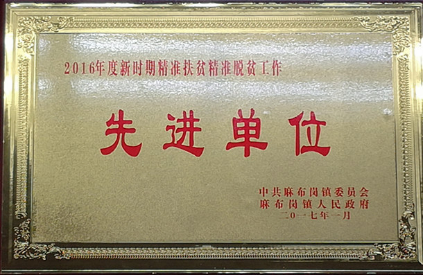 深创投被麻布岗镇评为“2016年度新时期精准扶贫精准脱贫工作先进单位”
