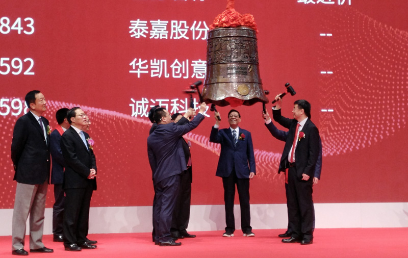 深创投总裁孙东升,华凯创意投资团队代表邓亮、陈楠等受邀出席了华凯创意在深交所的挂牌敲钟仪式。
