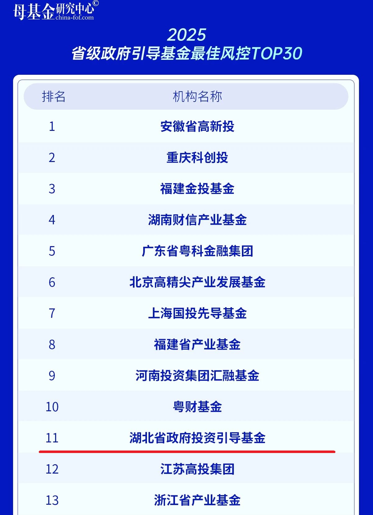 2025省级政府引导基金最佳风控TOP30