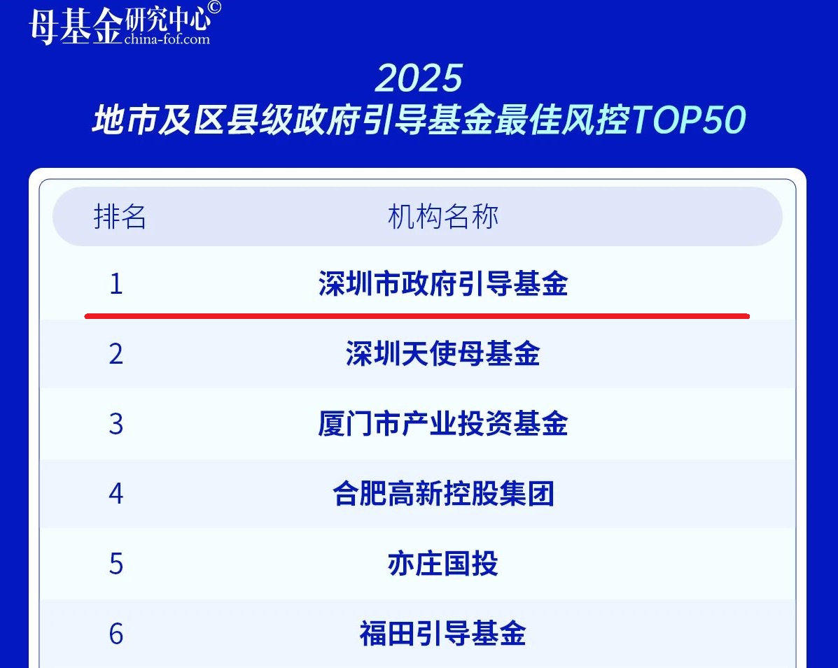 9月1日,母基金研究中心发布2025年度专项榜单,深创投及管理的多只政府引导基金荣登榜单。