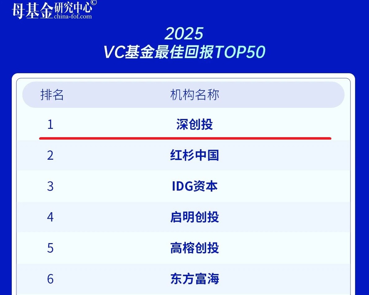 2025VC基金最佳回报TOP50 第一名