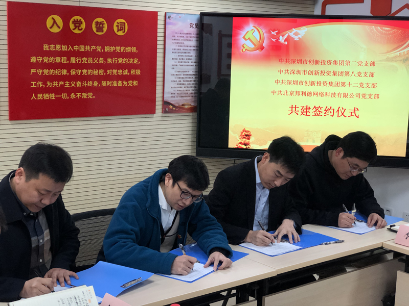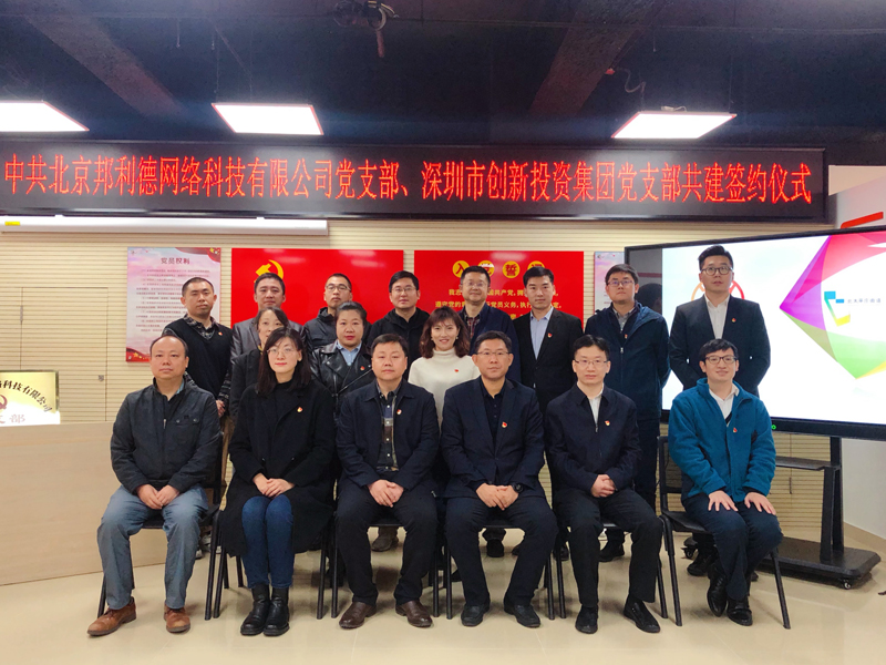 11月4日,在深创投集团第二、第八、第十二党支部推动下,北京邦利德网络科技有限公司(以下简称“邦利德”)举行党支部成立暨结对共建签约仪式。深创投集团党委副书记邵钢、北太平庄街道党群办副主任藏宁郁、邦利德党支部书记、CEO朱宁,以及双方党员及群众代表等20余人参加了此次活动。