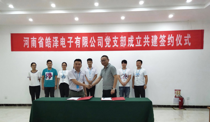 2018年8月22日,深创投集团投资的河南省皓泽电子有限公司(简称“皓泽电子”)举行了党支部成立暨共建签约仪式。深创投集团第一党支部党员、中原西北片区总经理吕豫同志出席了仪式,并代表深创投集团第一党支部与皓泽电子党支部签订了共建协议。
